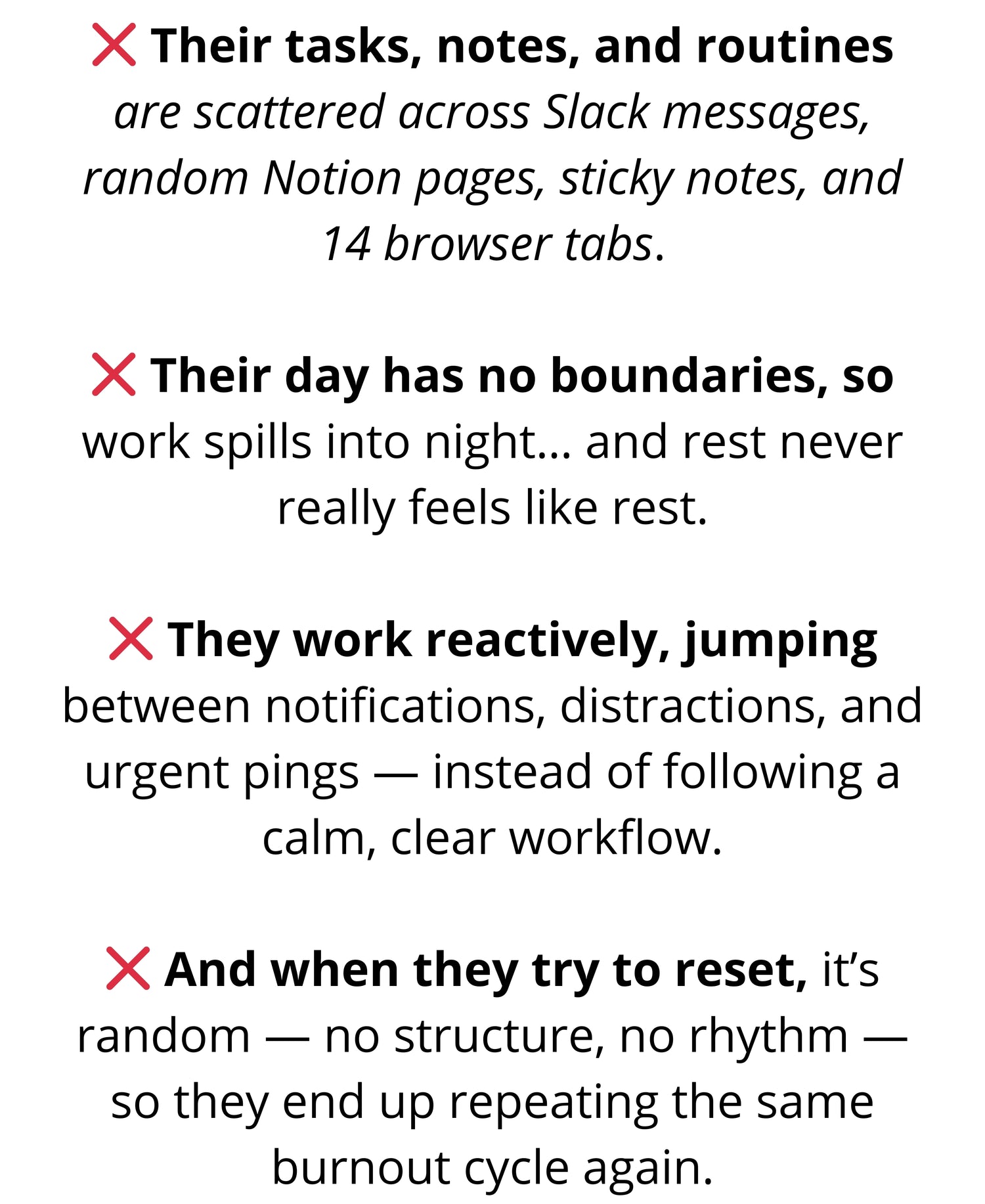 With no structure, no boundaries, and no separation between “work mode” and “life mode.”
